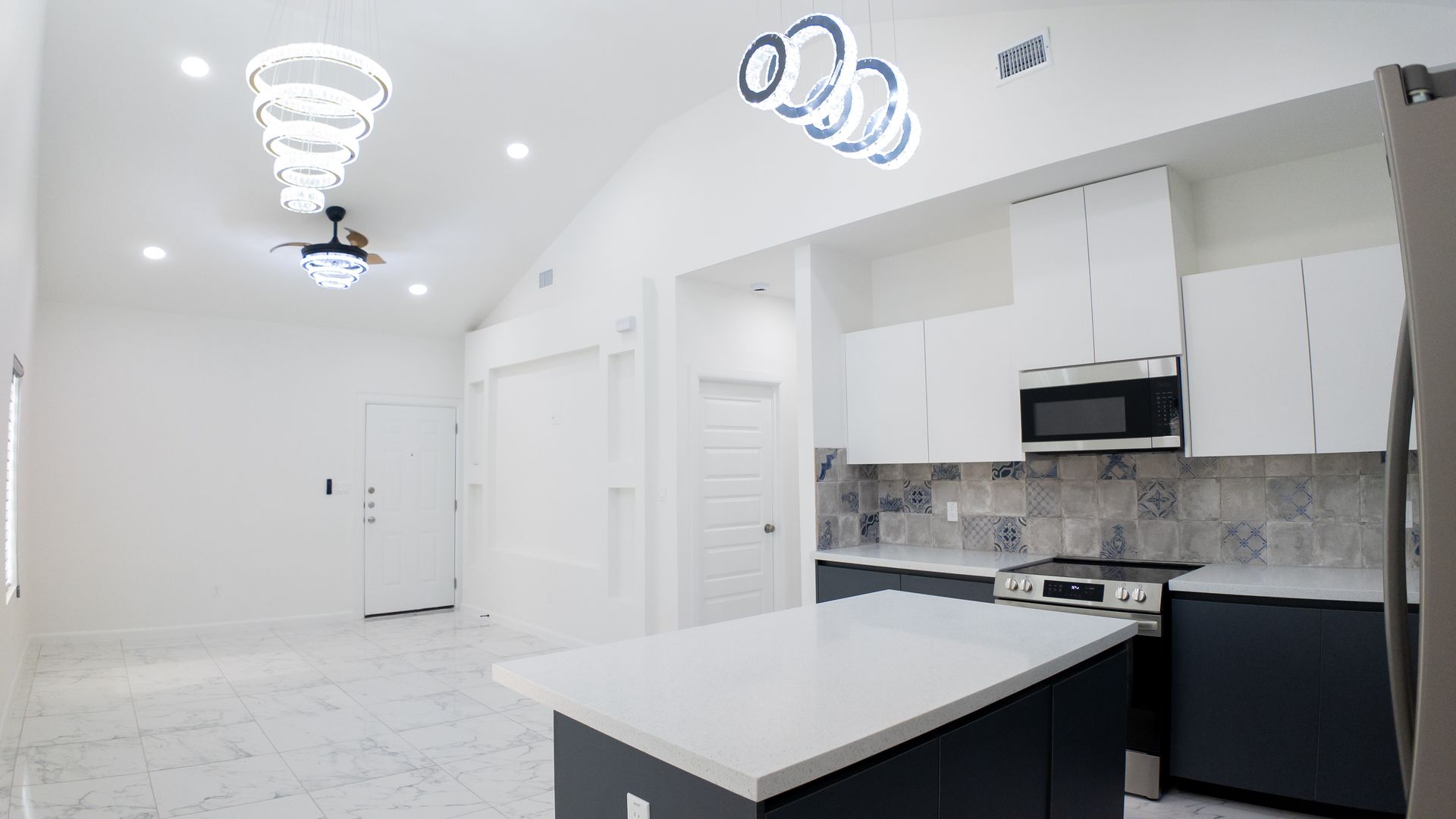 • Spacious high ceilings & modern tile flooring throughout